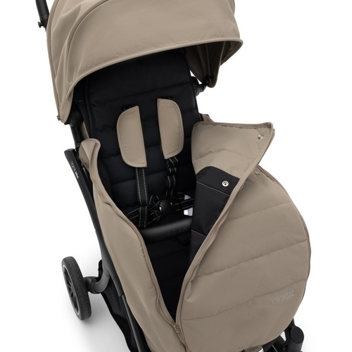 Глубокий капюшон коляски Agex Mini для лучшей защиты от солнца, ветра и дождя. Материал также обладает солнцезащитным фильтром UPF 50+, обеспечивая дополнительную безопасность для вашего малыша.
