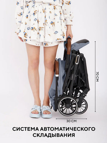 благодаря инновационной системе автоматически складывается сама - достаточно нажать на клавишу и слегка толкнуть ручку коляски вперед