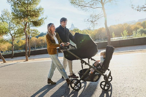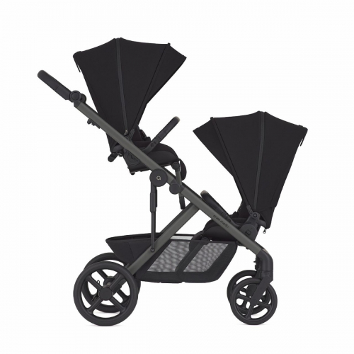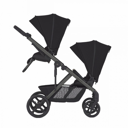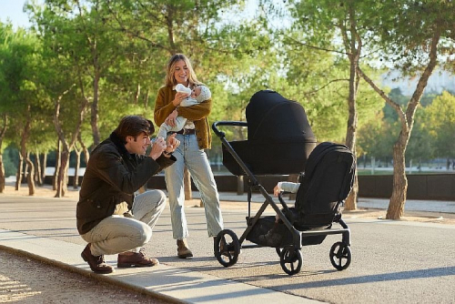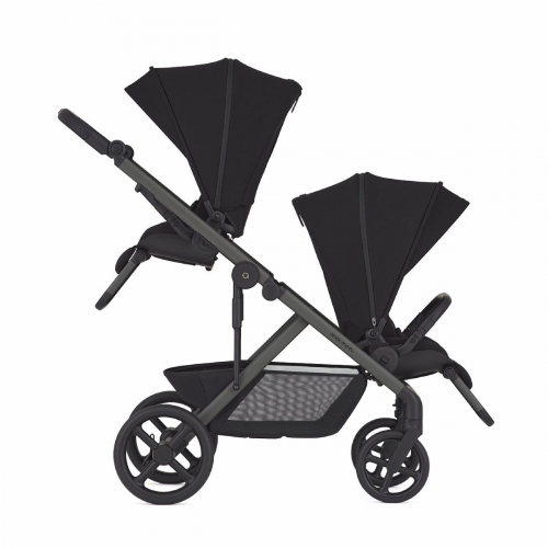 Поддерживает гибкие комбинации: две люльки, два сиденья, сиденье + люлька, два автокресла, коляска-вагончик и другие варианты.