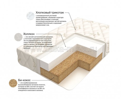- Сторона из холлкона подойдет для малыша с первых дней его жизни, а когда он подрастет матрас можно перевернуть на более жесткую сторону из Би-кокоса.