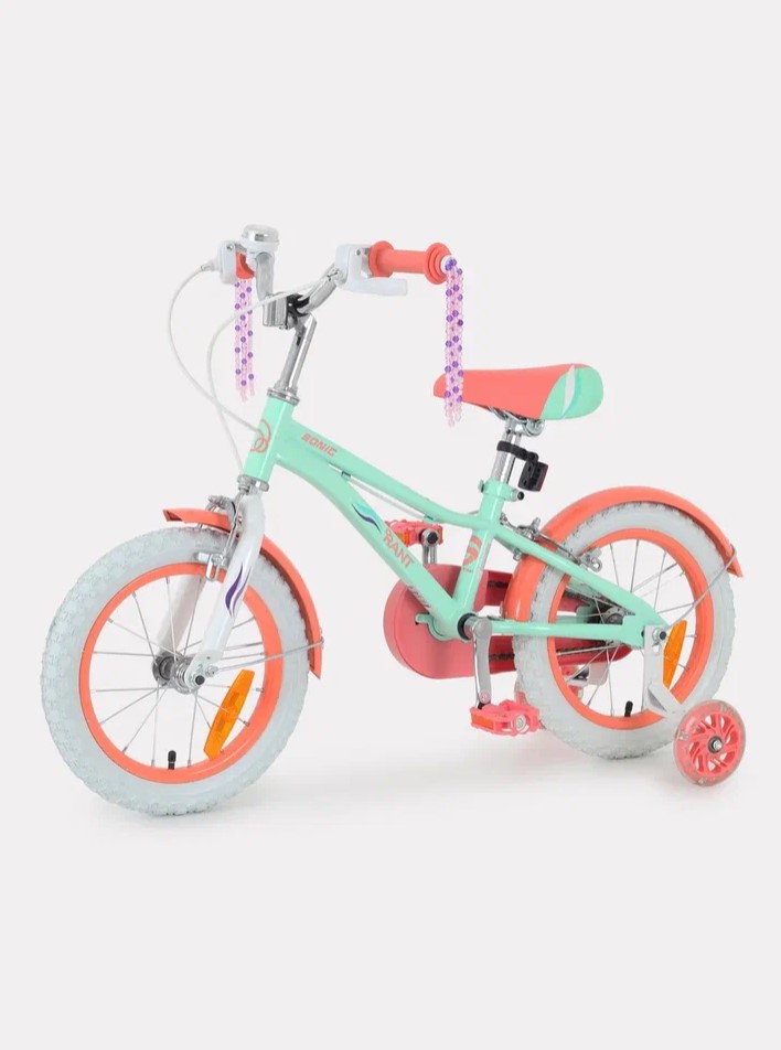 Велосипед двухколесный Rant Sonic 14" Энергичный дизайн детского двухколесного велосипеда RANT SONIC непременно оценит каждый ребенок! Также комфорта и уверенности юному исследователю добавят: светящиеся боковые колеса, кисточки на руле (белая и мятная модели), множество светоотражателей.
