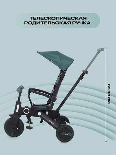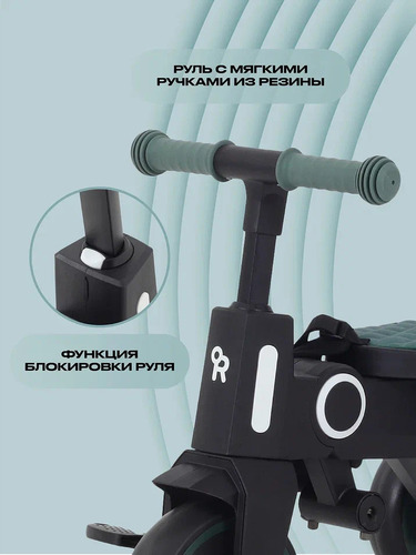 Велосипед оснащен качественными резиновыми колесами, которые позволят наслаждать прогулками не только по асфальту, но и в парках и по бездорожью. Для родителей с маленьким ребенком предусмотрена телескопическая ручка с удобной регулировкой по высоте.