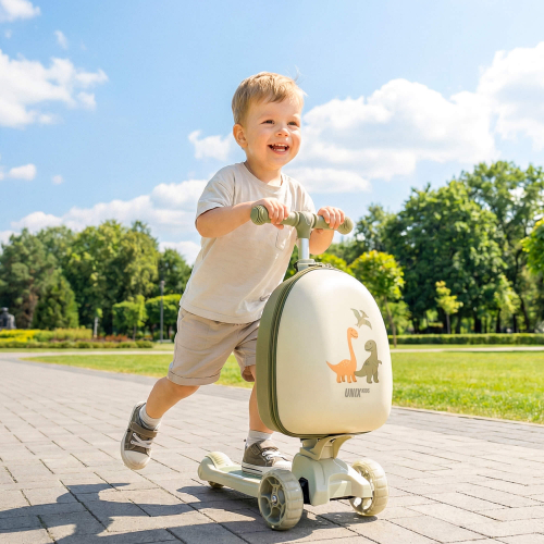 Главная Каталог Велосипеды, ролики, самокаты Самокаты Самокат UNIX Kids Backpack Dino / Дино с рюкзаком бежевый